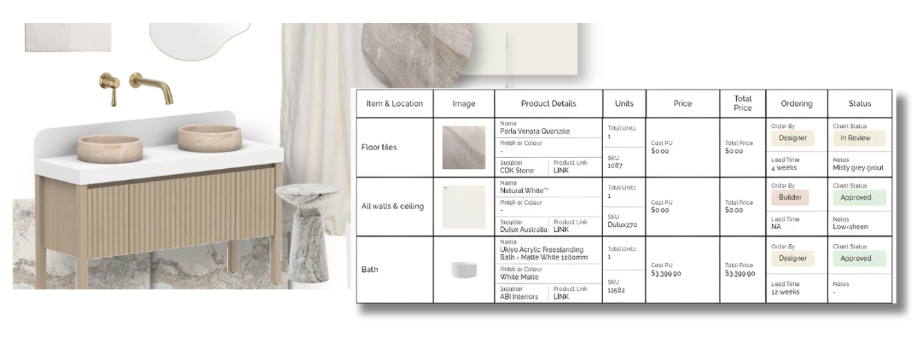I provide concept plans and 3D visualisations documenting client selections for fixtures, fittings, appliance's etc ready for the next step.